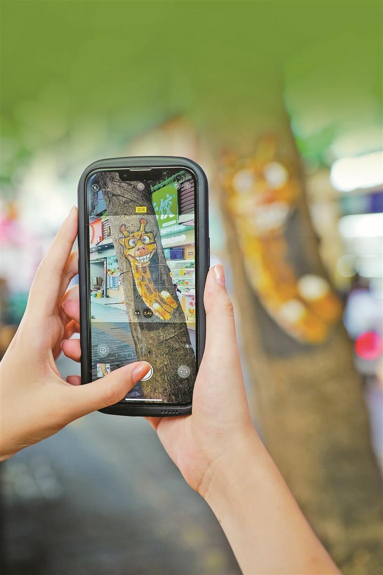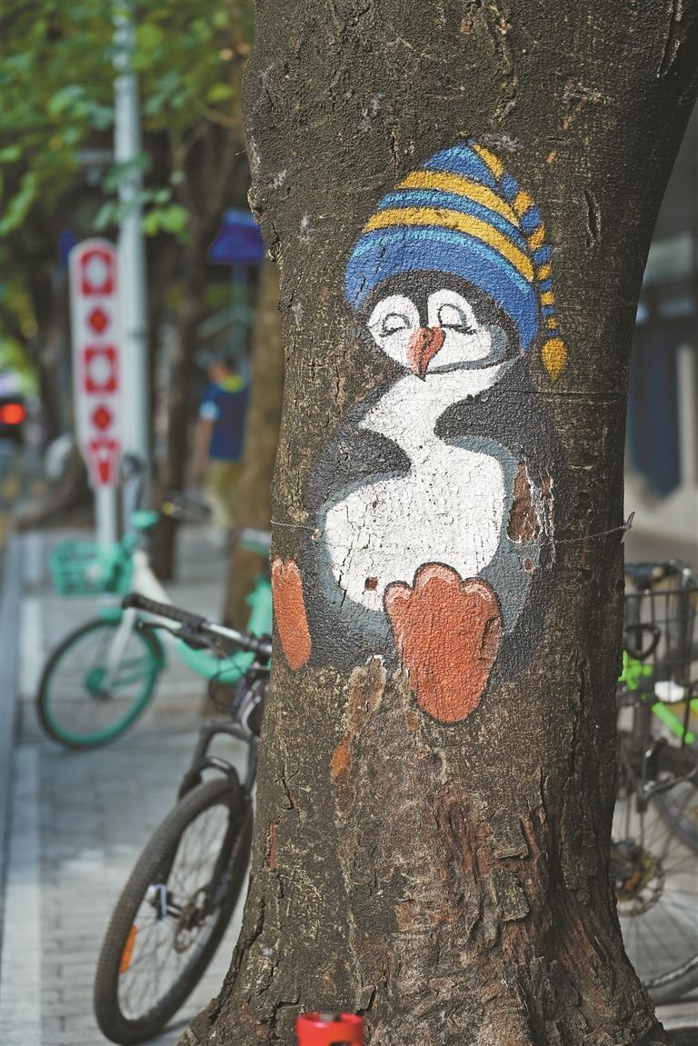 生動(dòng)有趣的樹(shù)繪吸引市民前來(lái)拍照打卡。 記者 嚴(yán)文婷 攝