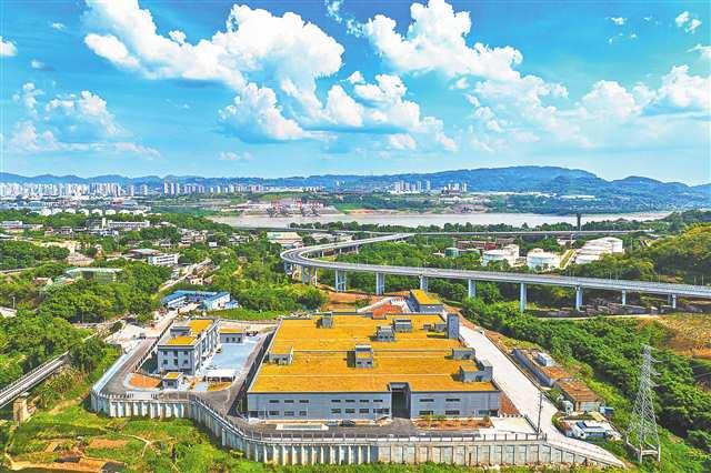 8月9日,大渡口區(qū)建勝鎮(zhèn)民勝村,藍(lán)天白云下的伏牛溪污水處理工程項(xiàng)目。