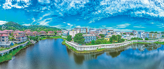 6 月27 日拍攝的廈門市思明區(qū)濱海街道黃厝社區(qū)塔頭社城中村的水庫(無人機拼接照片)。新華社記者 周義 攝