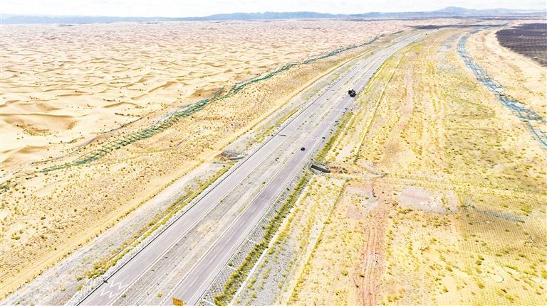 寧夏首條沙漠公路烏瑪高速公路青銅峽至中衛(wèi)段,全長122.99公里,其中18公里穿越騰格里沙漠腹地。