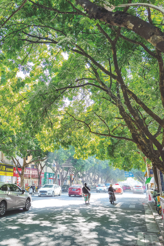 古城路綠樹成蔭,陽光從樹葉、樹枝間灑落,車輛仿佛穿行在綠色長廊中。記者 黃維業(yè) 攝