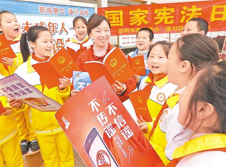 12月3日,在四川省達(dá)州市通川區(qū)羅江鎮(zhèn)魏興實(shí)驗(yàn)學(xué)校,普法志愿者給學(xué)生講解憲法知識(shí)。今年12月4日是第十一個(gè)國(guó)家憲法日,各地開(kāi)展形式多樣的活動(dòng)普及憲法知識(shí),宣傳法治觀念。2024年“憲法宣傳周”活動(dòng)主題為“大力弘揚(yáng)憲法精神,推動(dòng)進(jìn)一步全面深化改革”,時(shí)間為12月1日至7日。新華社發(fā)