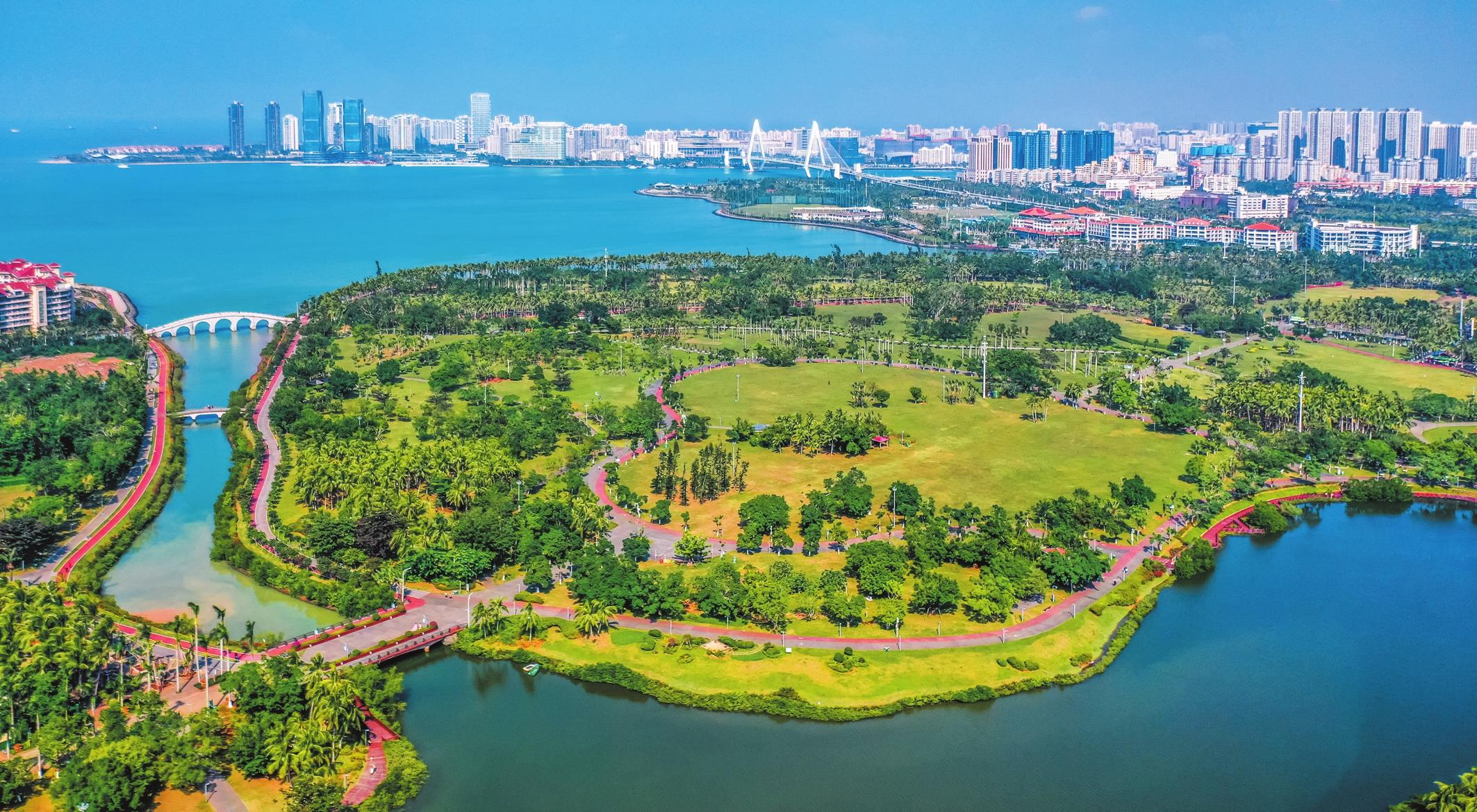 目前,???大公園老舊公共服務設施配套及改造項目整體完工并投用。圖為綠意盎然的??谌f綠園。記者 康登淋 攝