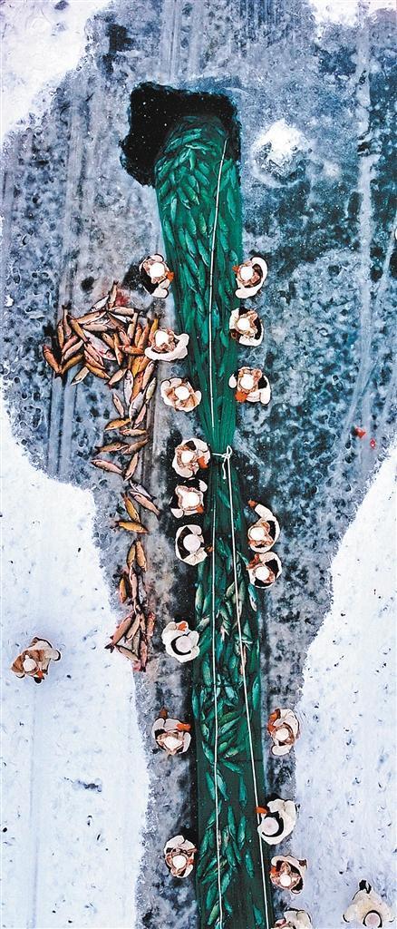 1月11日,新疆巴州博湖縣第十七屆冬雪季冬捕活動在博斯騰湖大河口景區(qū)開幕,漁民正齊心協(xié)力拉網(wǎng)捕魚。謝江林 攝(中經(jīng)視覺)
