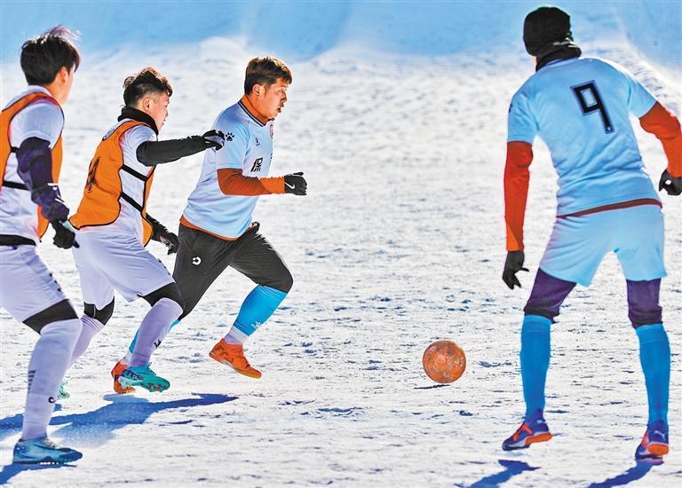 1月8日,河北省第五屆冰雪運動會雪地足球比賽在秦皇島市老君頂景區(qū)開展。曹建雄 攝(中經(jīng)視覺)