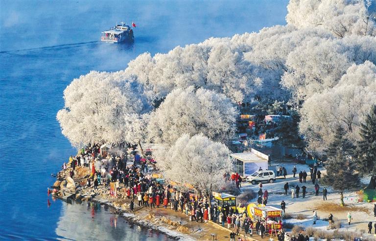1月12日,吉林省吉林市松花江畔,游人在觀賞霧凇。韓加君 攝(中經(jīng)視覺)