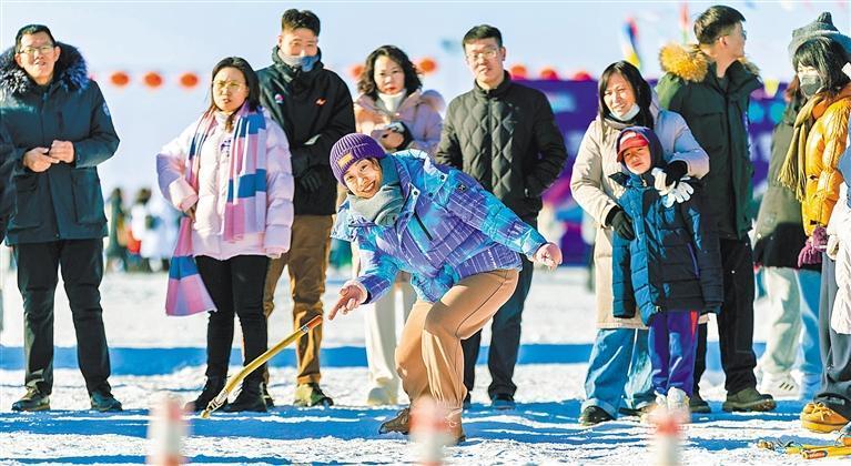 1月10日,游客在內(nèi)蒙古呼和浩特市賽罕區(qū)城市冰雪那達(dá)慕上參加民俗活動。丁根厚 攝(中經(jīng)視覺)