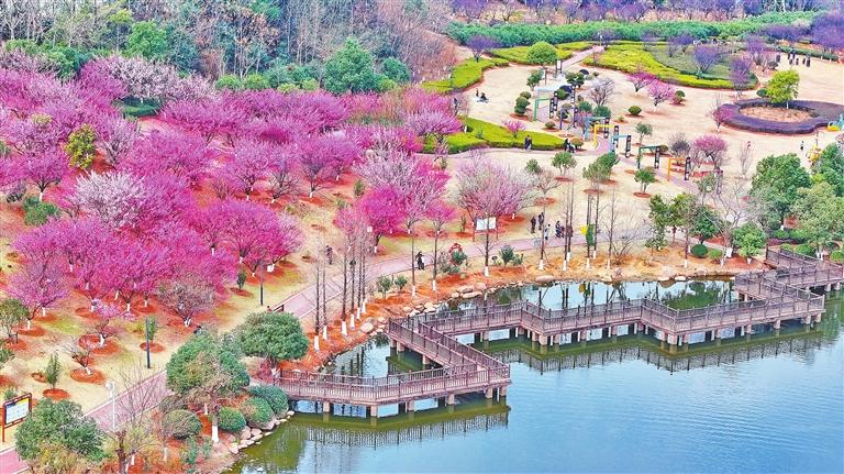 1月31日,贛州經(jīng)開區(qū)金鳳梅園紅梅盛放,游人如織,城市建筑與濕地景觀相融相襯,美不勝收。通訊員 朱海鵬攝