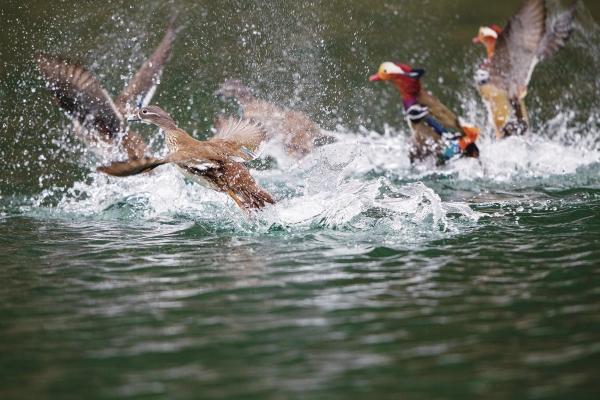 2月9日,桃源縣王家灣水庫,鴛鴦戲水,水花四濺。鴛鴦在湖南是冬候鳥,棲息于山地的河谷、溪流,屬國家二級(jí)保護(hù)動(dòng)物。