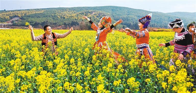 2月15日,云南曲靖市師宗縣扯寨村,油菜花漸次開放,吸引游客前來踏青游玩。孫文來 攝(中經(jīng)視覺)