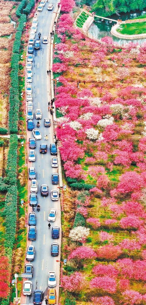 2月16日,江西吉安市永豐縣恩江濕地公園,櫻花競相綻放。劉浩軍 攝(中經(jīng)視覺)