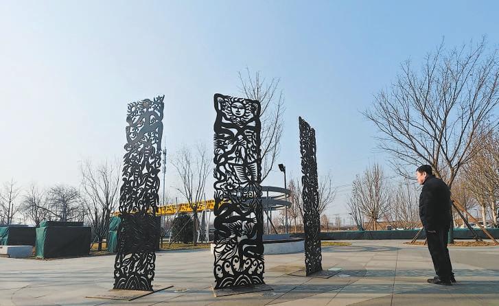 戶外雕塑扮靚宋莊藝術(shù)創(chuàng)意小鎮(zhèn)。特約攝影 常鳴