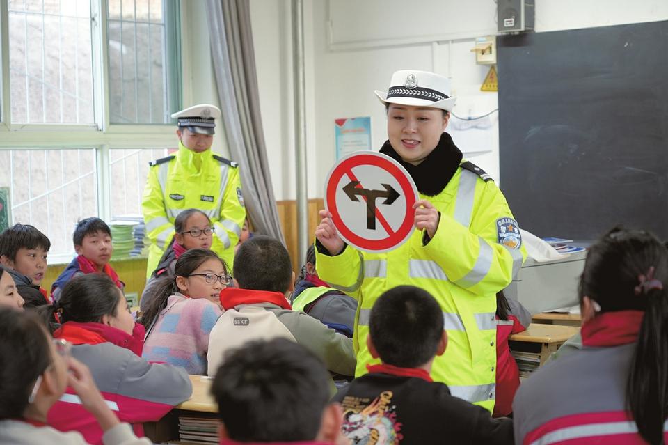 知危險會避險,交通安全進校園。3月3日,太原市公安局交警支隊迎澤一大隊民警謝蕾在迎澤區(qū)港道小學(xué)開展安全教育進校園活動,以互動識標、圖文漫畫等多種形式,多維度宣傳學(xué)生步行、騎行、乘車交通安全常識,提升學(xué)生交通安全意識和自我防護能力。任偉國 攝