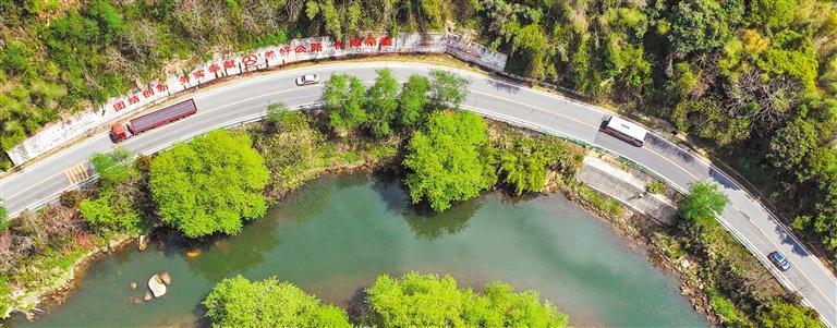 4月3日,江西宜春市宜豐縣黃崗鎮(zhèn),平坦整潔的農(nóng)村公路與樹(shù)木、河流相互映襯。周亮攝(中經(jīng)視覺(jué))