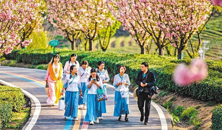 4月6日,湖北十堰市竹山縣山水茶園步道,游客在茶園觀光休閑。章磊攝(中經(jīng)視覺(jué))