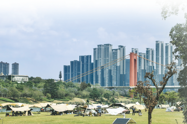 市民在邕江沿岸公園里露營,擁抱自然,放松身心。記者 葉子榕 攝