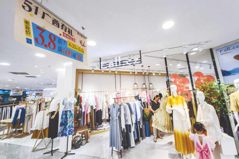 假日期間,南寧各大商場推出滿減、折扣等優(yōu)惠活動,萬象城、萬達茂、夢之島百貨等商場人頭攢動,人們在服飾、電子產品、美妝等專柜前挑選心儀的商品。