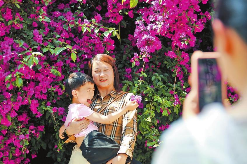 5月,昆明市五華區(qū)地臺(tái)寺鐵路兩側(cè)的三角梅絢爛綻放。在米軌鐵路旁、街巷轉(zhuǎn)角處,火紅的花瀑與周圍景物相映成趣,構(gòu)成了一幅充滿詩(shī)意的城市畫卷。(記者 高吳雙 攝)