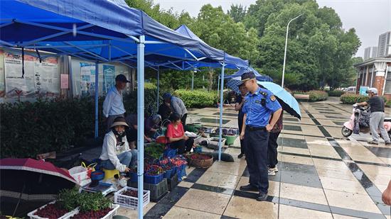 “阿姨,您在這兒流動(dòng)擺攤既不安全也影響交通,不如去附近的楊梅疏導(dǎo)點(diǎn)看看?我先帶您過(guò)去?!?月10日上午,大碶街道綜合行政執(zhí)法隊(duì)隊(duì)員熱情地向一位梅農(nóng)阿姨介紹街道特設(shè)的楊梅自產(chǎn)自銷(xiāo)“好去處”。