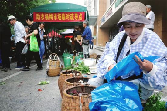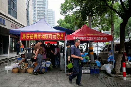 “我們連續(xù)好幾年都在這里擺攤,每年都把自家現(xiàn)摘的楊梅運來,因品相好,大家都喜歡,一早上就能賣掉不少呢,這個疏導點真好?!币晃粭蠲贩N植戶開心地說。