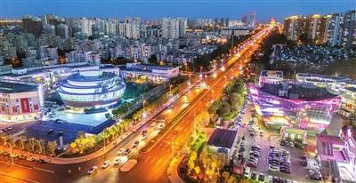 夜幕降臨,天津市友誼路沿線燈火璀璨,水晶宮飯店、津誼橋、蓮花酒店等地標(biāo)建筑披上絢麗的光影外衣。