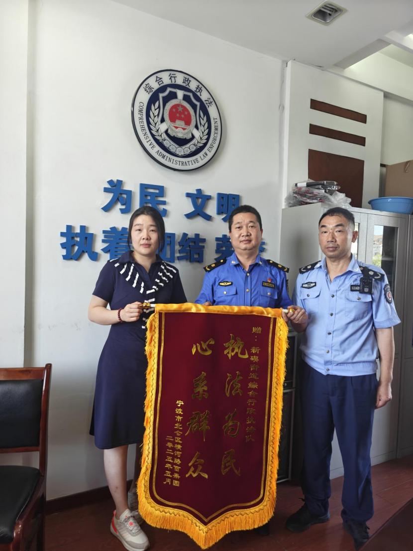 6月6日,劉女士將印有“執(zhí)法為民 心系群眾”的錦旗送到新碶街道綜合行政執(zhí)法隊?!艾F(xiàn)在我們店日均客流量反而有所增加,因為規(guī)范擺放后讓通道更寬敞,顧客進(jìn)出更方便了?!彼χf?!皥?zhí)法人員不僅‘治病’,更‘開藥方’!他們站在企業(yè)角度,幫我們找到經(jīng)營與依法依規(guī)的平衡點(diǎn)。這面錦旗代表我們的敬意和承諾!”