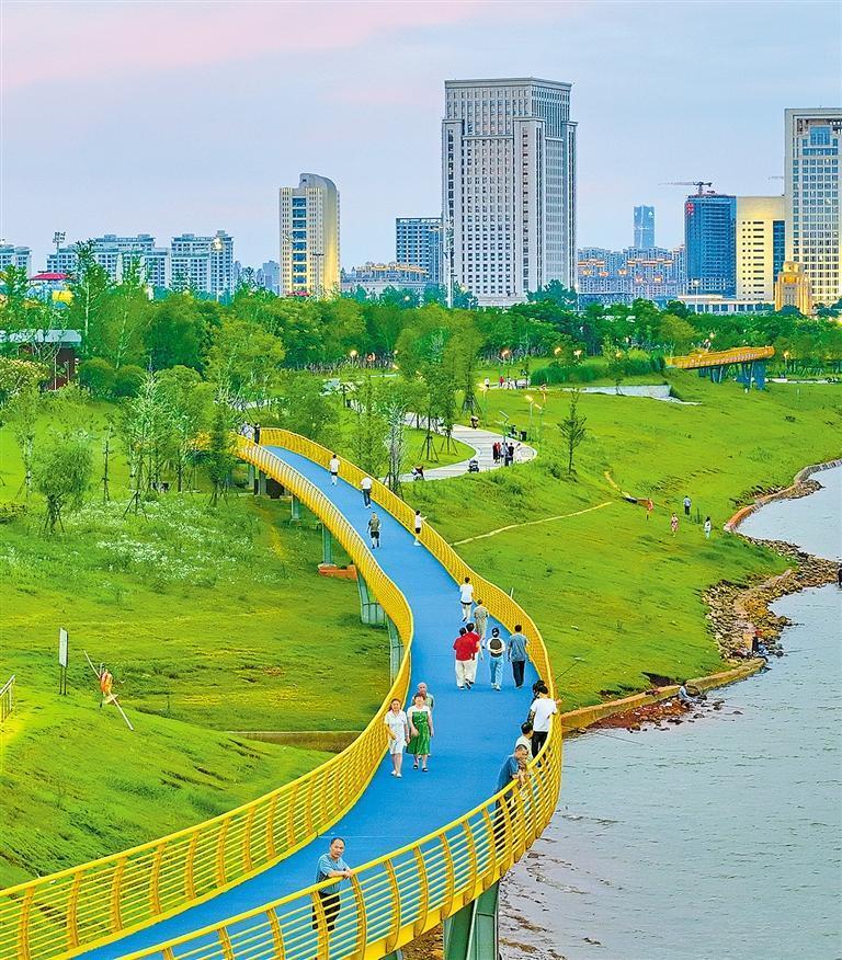 6月14日,江西省南昌市紅谷灘區(qū)贛江市民公園,漫游長(zhǎng)廊、休閑步道、兒童樂園等功能型、游樂類設(shè)施成為市民健身鍛煉的好去處。近年來(lái),當(dāng)?shù)胤e極建設(shè)城市綠色通道和生態(tài)景觀長(zhǎng)廊,并通過水系治理、岸線整治、濕地修復(fù)、增添設(shè)施等措施,打造風(fēng)景秀麗、功能多樣的主題公園,讓群眾樂享“15分鐘健身圈”。朱海鵬攝(中經(jīng)視覺)
