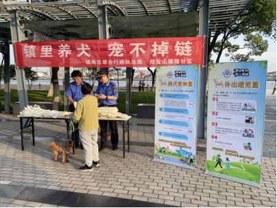為紀(jì)念《寧波市養(yǎng)犬管理?xiàng)l例》頒布5周年,進(jìn)一步提升市民文明養(yǎng)犬意識(shí),構(gòu)建和諧養(yǎng)犬環(huán)境,6月 17日傍晚,浙江省寧波市鎮(zhèn)海區(qū)綜合執(zhí)法局聯(lián)合招寶山街道順隆社區(qū),在沿江公園開展了一場主題為“鎮(zhèn)里養(yǎng)犬、寵不掉鏈”的宣傳活動(dòng)。