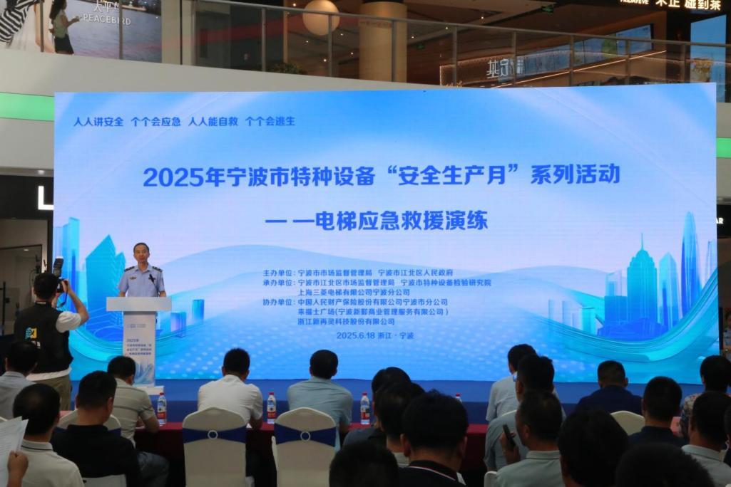 6月18日下午,由浙江省寧波市市場監(jiān)管局、寧波市江北區(qū)人民政府主辦的2025年寧波市特種設(shè)備“安全生產(chǎn)月”系列活動——電梯應(yīng)急救援演練在江北區(qū)來福士廣場舉行。