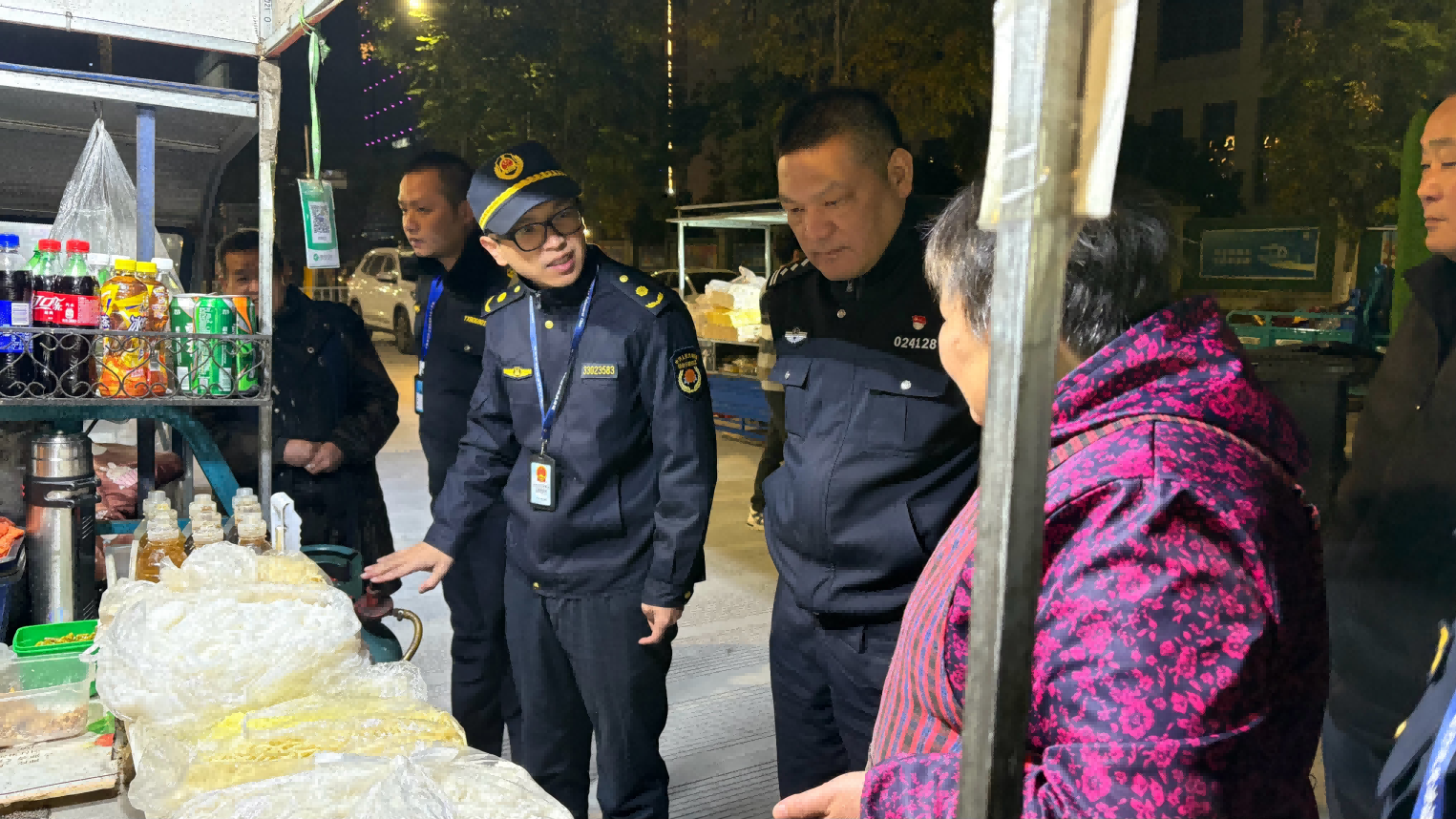 暮色漸沉,岳林夜市華燈初上,各色美食的香氣在暖風(fēng)中彌漫交織;錦屏工地的便民點燈火溫馨,工人們圍坐在整潔的餐桌旁,享用著經(jīng)濟實惠的熱乎飯菜,談笑聲陣陣;天妃湖畔,“五色”攤點在暮色中次第亮起暖光,游客的歡聲笑語與湖水的輕響相伴。而在執(zhí)法人員每日的巡查日志上,“勸離”“處罰”等記錄日漸稀少,“規(guī)范引導(dǎo)”“協(xié)調(diào)服務(wù)”“安全檢查”成為高頻關(guān)鍵詞。