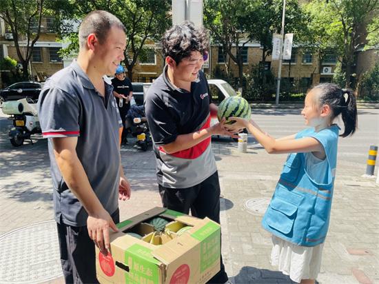 去年暑假,福城社區(qū)的十多名小學(xué)生曾眾籌563元,支起“小小網(wǎng)格員的愛(ài)心西瓜鋪”,為戶外工作者免費(fèi)送西瓜。今年暑假剛至,在社區(qū)退役軍人的支持下,這個(gè)愛(ài)心項(xiàng)目升級(jí)成為清涼驛站。