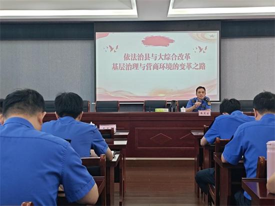 7月4日下午,浙江省寧波市象山縣綜合行政執(zhí)法局組織了一場主題鮮明、內(nèi)涵深刻的專題黨課。象山縣綜合行政執(zhí)法局黨組成員張靈啟以“依法治縣與大綜合行政執(zhí)法改革”為核心,深度融合黨風(fēng)廉政建設(shè)要求,為全體黨員干部上了一堂兼具理論高度與實踐深度的黨課,強調(diào)以法治思維引領(lǐng)改革、以清廉建設(shè)保障改革,為優(yōu)化營商環(huán)境、提升縣域治理現(xiàn)代化水平注入強勁動能。