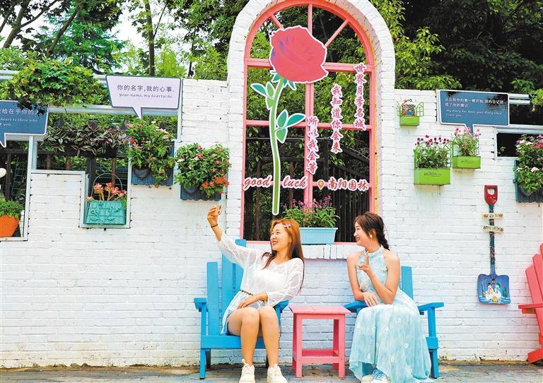 6月25日,市民在河南省南陽市濱河路一處改造后的景觀點拍照。高嵩攝(中經(jīng)視覺)