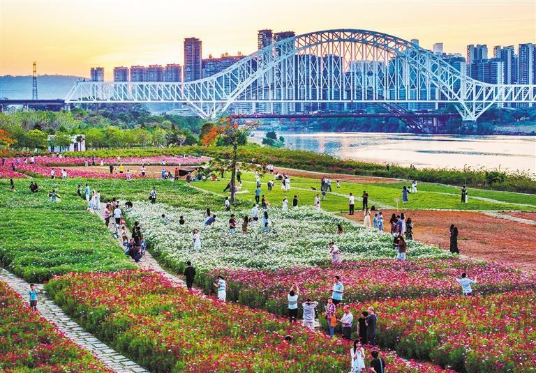 5月12日,廣西壯族自治區(qū)南寧市邕寧區(qū)江灣路三岸大橋綠道旁的格桑花盛開,吸引眾多市民前來觀賞。曾祥忠攝(中經(jīng)視覺)