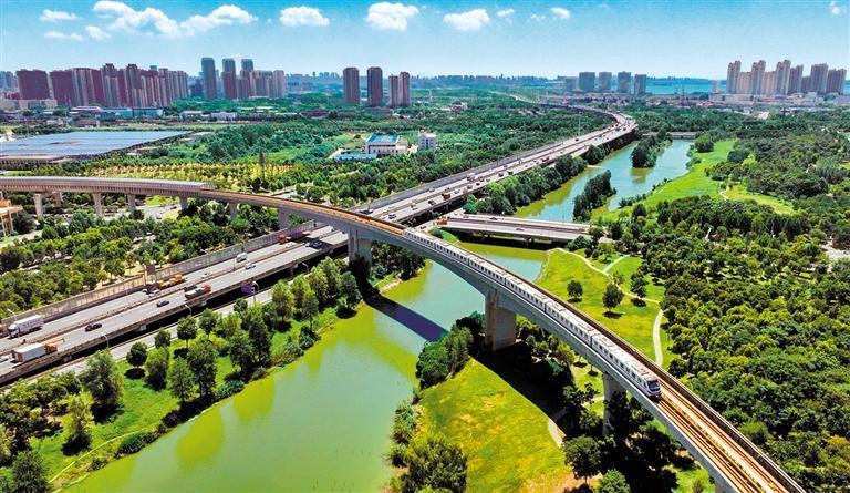 7月3日,湖北省武漢市首條全自動運行軌道交通線,列車駛過黃家湖大學(xué)城。產(chǎn)啟斗攝(中經(jīng)視覺)
