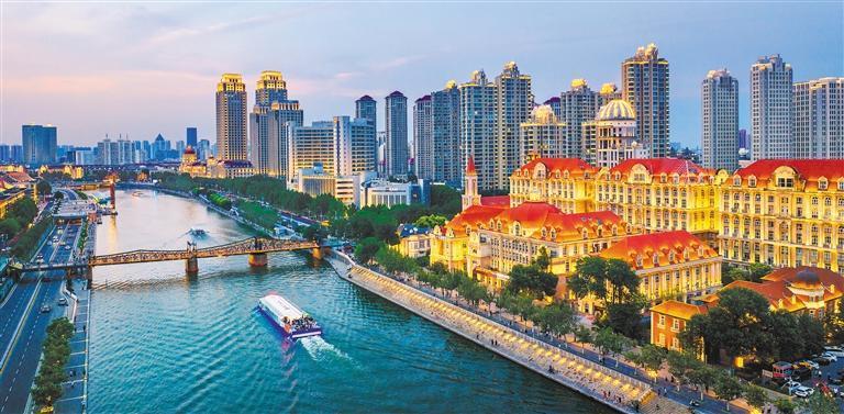 7月10日,天津市海河兩岸燈光璀璨。近年來,當(dāng)?shù)丶铀偻七M美麗河湖建設(shè),提升城市生態(tài)宜居水平。張明偉攝(中經(jīng)視覺)