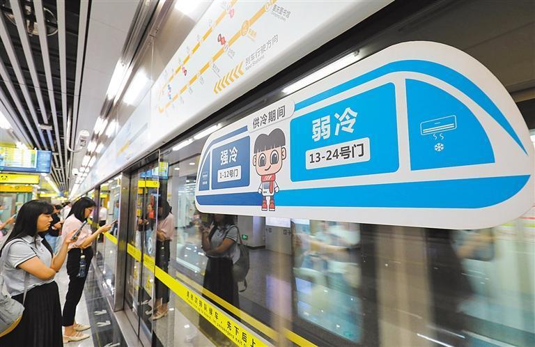 6月19日,重慶市沙坪壩區(qū)一軌道交通車站內(nèi)張貼著醒目的車廂溫度提醒標識。目前,重慶軌道交通線路全面推行“雙溫車廂”服務,在滿足不同乘客冷暖需求的同時降低空調能耗。孫凱芳攝(中經(jīng)視覺)