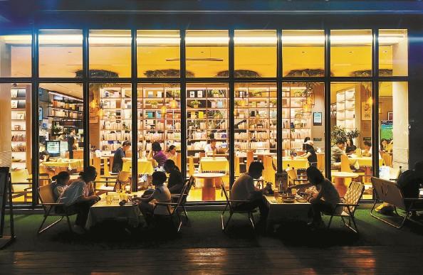 在和平公園,有不少市民吃完晚飯后來到這里,或乘涼小憩,或健身娛樂,或在和平書院里點(diǎn)一杯咖啡、讀一本好書,盡享夜公園的“清涼一夏”。圖為24小時開放的和平書院成為市民夜間消夏好去處。(楊建正 攝影報道)
