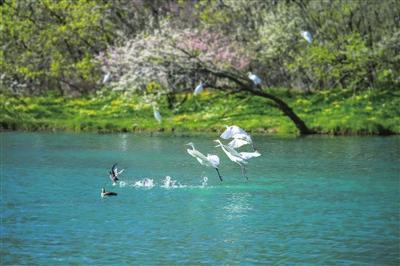 水質(zhì)澄澈,是河流的靈魂。曾幾何時,汾河蒙塵。而今,清流滌蕩污濁,終于喚醒了沉睡的見證者——被譽為“活體水質(zhì)檢測器”的桃花水母,在四期水域輕盈旋舞,近乎透明的傘蓋如精靈般浮動。清波之下,是萬物生長的秘境;碧水之上,是羽翼的樂園。天鵝、白鷺、蒼鷺、斑嘴鴨……上百種鳥兒于此棲息,它們翅膀的每一次扇動,都是對汾河生態(tài)最真實的肯定。騎行者在綠道上飛馳,身影融入兩岸的錦繡;游人漫步木棧道,步伐隱沒在流動的詩意里;沿岸居民推窗見綠,汾河終于找回了它清亮的歌喉。