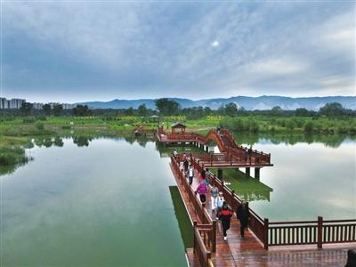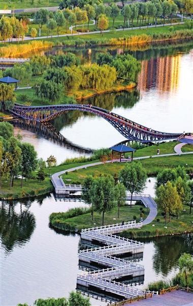 風(fēng)光旖旎,是河流的容顏。順流而下,汾河四期如一幅水墨長卷在城北徐徐鋪展。雁丘園內(nèi),當(dāng)年元好問筆下“問世間、情是何物”的慨嘆,如今沉淀為濕地間婉轉(zhuǎn)的鳥鳴與蘆葦迷宮的低語。流水潺潺,棧道曲折,每一處彎折都藏著靜謐的驚喜。再往前行,豁然開朗處,“小三亞”的金色沙灘在陽光下閃耀,孩子們追逐嬉戲,帳篷如花朵點綴在碧水金沙之畔,城市人心中向往的“遠方”觸手可及。