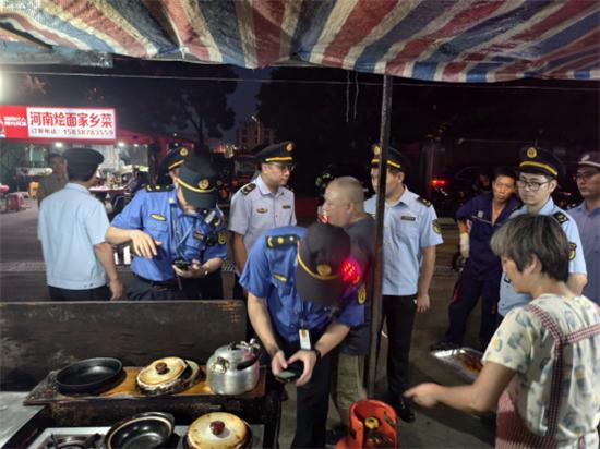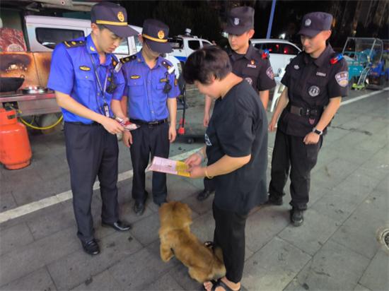 此次專項檢查重點覆蓋轄區(qū)內(nèi)的餐飲店鋪、夜宵城及周邊小區(qū),執(zhí)法人員圍繞商戶燃氣及灶具的規(guī)范使用、餐飲環(huán)境衛(wèi)生、食品安全、消防安全以及居民文明養(yǎng)犬等方面,進行了全面細致的排查。在澥浦夜宵城檢查時,發(fā)現(xiàn)部分商戶存在燃氣瓶過期的現(xiàn)象。對此,執(zhí)法人員一方面指導(dǎo)商戶整改違規(guī)用氣行為,同步開展燃氣安全使用宣傳;另一方面結(jié)合商戶經(jīng)營需求,第一時間聯(lián)系美氣多公司到場,協(xié)助商戶現(xiàn)場辦理開戶,并指導(dǎo)其通過官方電話、企業(yè)微信公眾號等正規(guī)渠道訂氣,從源頭上杜絕“黑氣”流通。這種集安全宣教、整改指導(dǎo)與現(xiàn)場服務(wù)于一體的方式,讓商戶切實感受到執(zhí)法的溫度,也提升了對服務(wù)式執(zhí)法的認可。同時,執(zhí)法人員對小區(qū)周邊進行犬類集中整治,因夏季遛狗居民較多,執(zhí)法人員提醒養(yǎng)犬居民文明養(yǎng)犬,謹防犬類傷人事件發(fā)生。