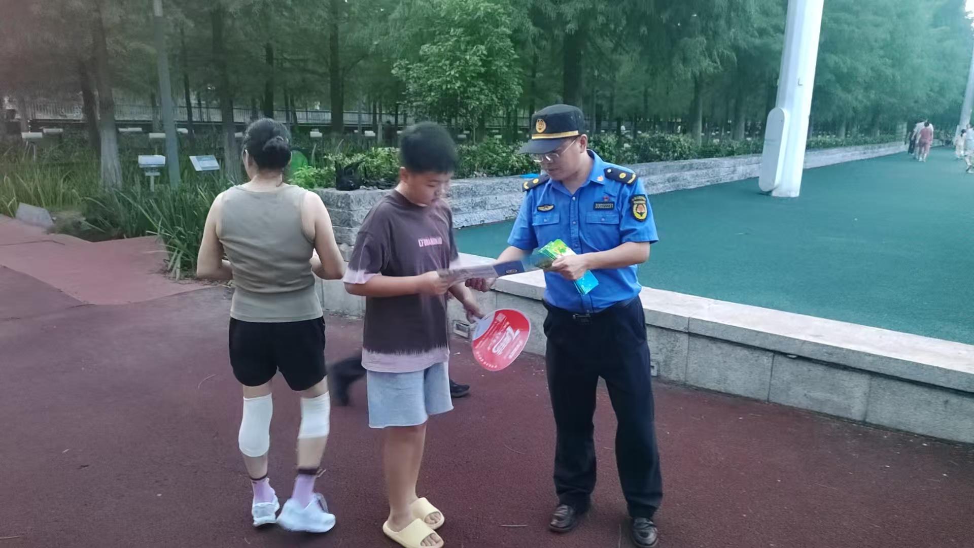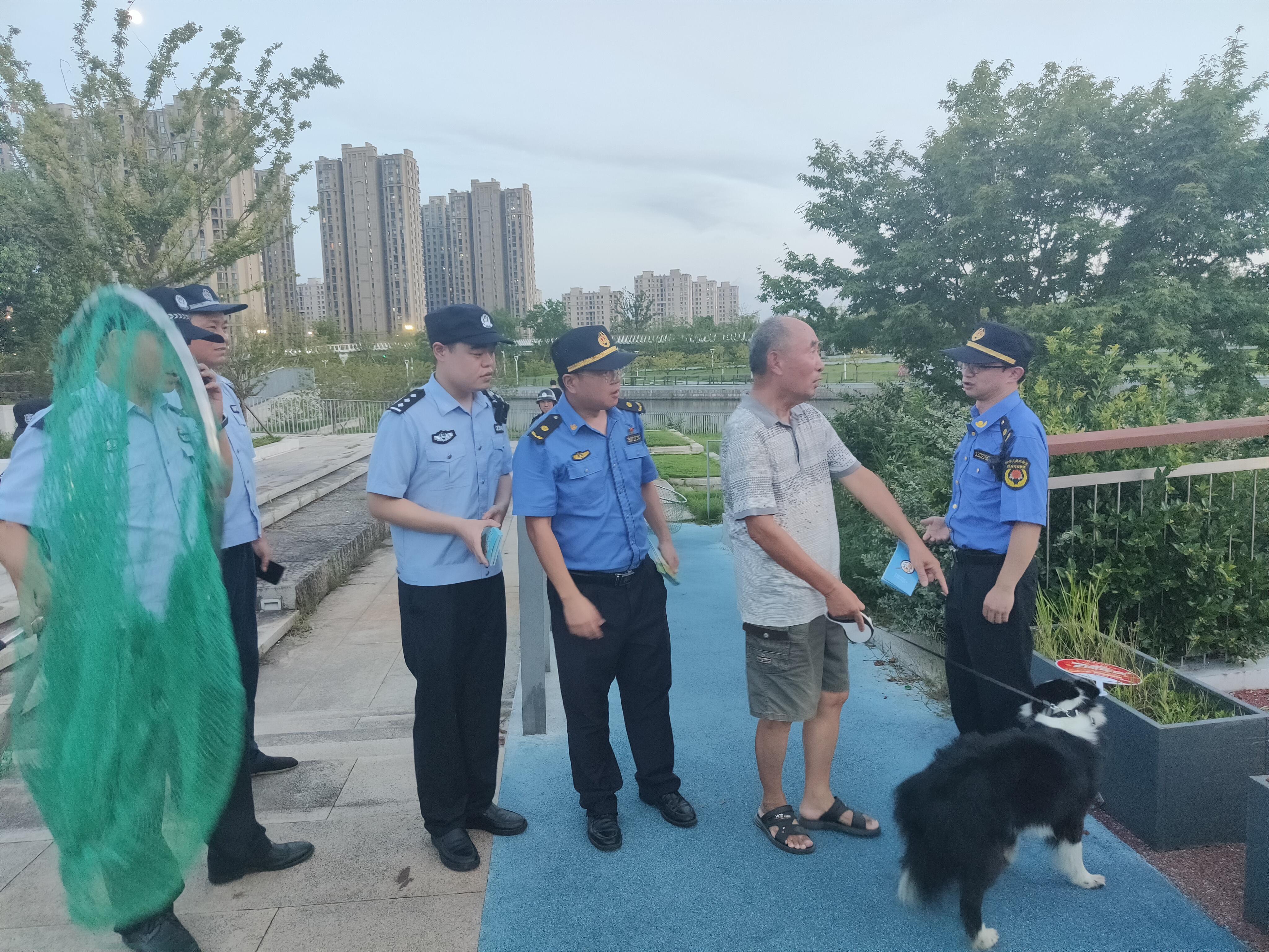 執(zhí)法人員在西大河體育公園、箭港湖公園等地開展路面巡查