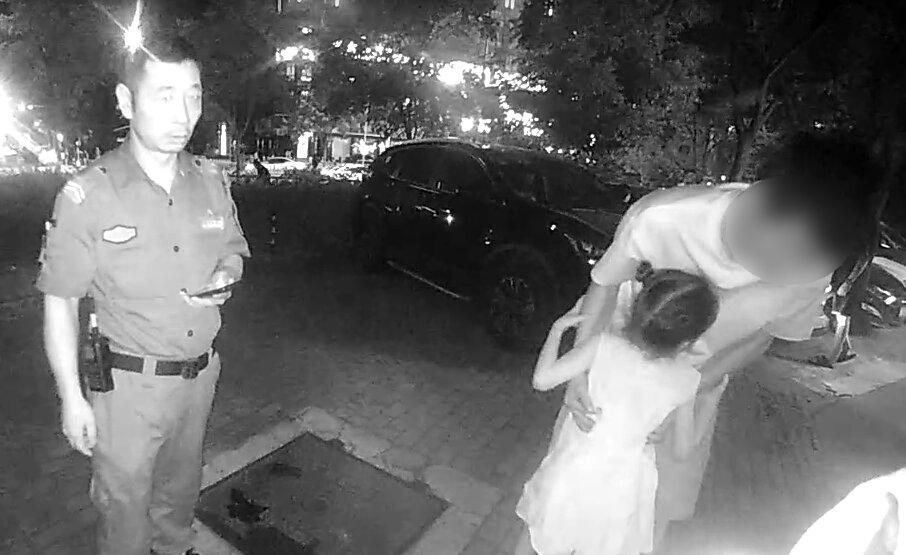 “小寶貝你多大啦?”“是在樓上吃還是在樓下吃的???”一路上,張龍牽著小女孩的手,邊走邊聊,耐心的話語和掌心的溫度,讓小女孩緊繃的小臉逐漸放松下來。同時(shí),張龍?jiān)趦扇说膶?duì)話中迅速提取有效信息。長長的街巷,大手牽小手的兩個(gè)身影在路燈下緩緩前行。