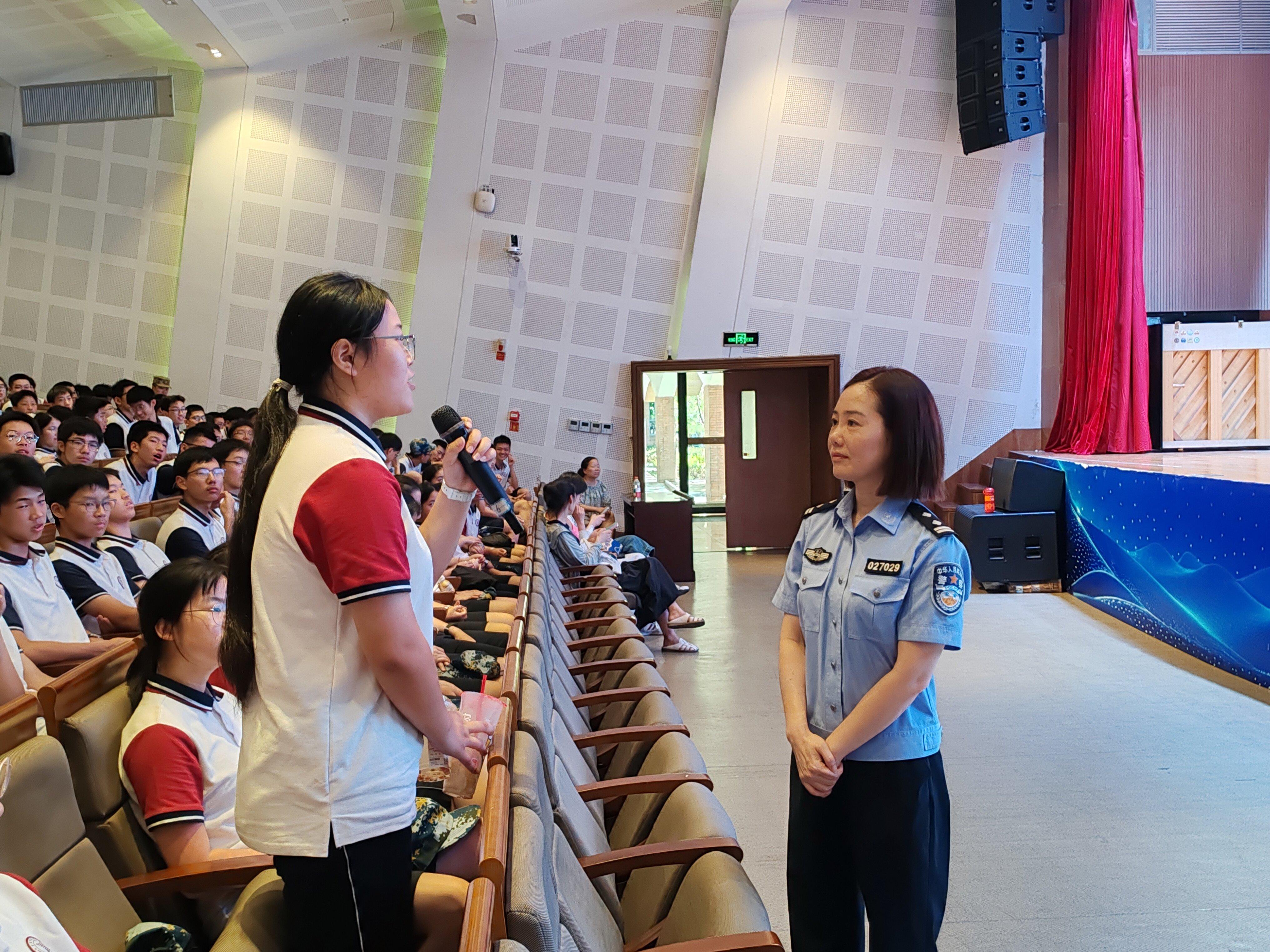 新學(xué)年啟幕,當(dāng)青春與法治相遇,當(dāng)安全與成長(zhǎng)同行,浙江省寧波市公安局鄞州分局下應(yīng)派出所攜手鄞州中學(xué)以一場(chǎng)別開生面的“開學(xué)第一課”點(diǎn)亮校園安全之光。8月20日下午,下應(yīng)派出所“Madam來(lái)了”志愿團(tuán)團(tuán)長(zhǎng)、民警董黎娜化身“安全導(dǎo)師”走進(jìn)校園,以反詐、防溺水、防校園欺凌三大主題為畫筆,為全校師生勾勒出一幅“平安成長(zhǎng)路線圖”,讓法治意識(shí)與安全技能如種子般扎根在青少年心田。