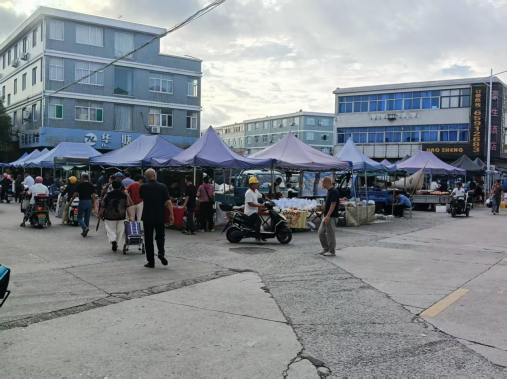 9月3日凌晨3點(diǎn)的浙江省象山縣定塘鎮(zhèn),中心菜場(chǎng)西側(cè)的路燈在薄霧中暈開(kāi)暖黃的光。每個(gè)月9次,雷打不動(dòng)的農(nóng)貿(mào)集市在此準(zhǔn)時(shí)開(kāi)張。蔬菜區(qū)的塑料筐碰撞聲、水產(chǎn)區(qū)的氧氣泵嗡鳴聲、服裝區(qū)的金屬清脆摩擦聲,共同編織成小鎮(zhèn)的晨光序曲。