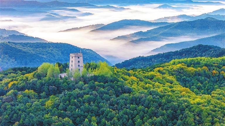 金秋時節(jié),晨曦中的正寧縣中灣林場調令關森林公園美如畫卷。王啟寧 攝