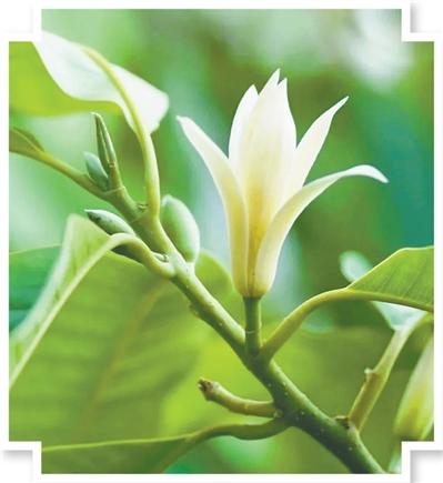 白蘭,別名白緬花、緬桂花,廣植于我國南方。樹為木蘭科含笑屬常綠喬木,可高達17米,枝廣展,樹冠呈闊傘形,是著名的庭園觀賞樹種,也多栽為行道樹。花潔白清香,花期4月至9月,可提取香精或熏茶,也可提制浸膏供藥用,有行氣化濁、治咳嗽等功效。鮮葉可提取香油,稱“白蘭葉油”,可供調(diào)配香精。樹皮灰色,揉枝葉有芳香,葉根皮均可入藥。(記者 洪秋婷 李剛 資料來源:佛山市城管局)