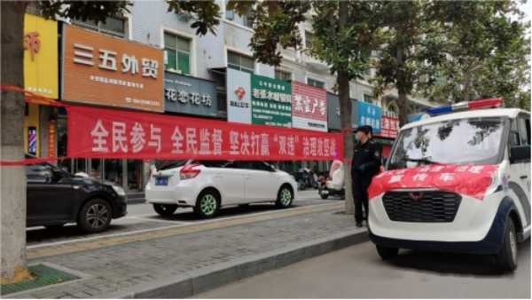 利用巡邏車、懸掛條幅開展多層次、多渠道、全方位宣傳“雙違”治理工作,加強正面宣傳引導(dǎo),形成強大輿論氛圍。同時通過走街串巷面對面開展政策解讀、法律宣傳、風(fēng)險提示等,把政策法規(guī)向群眾講清楚、講明白,讓“雙違”治理工作入腦入心。