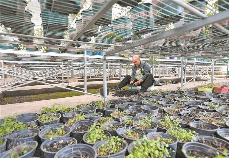 科研資源圃里滿(mǎn)是綠意,澆水、育肥、檢測(cè)——綠化人的身影穿梭其間。技術(shù)工常文蹲在苗床邊,指尖輕輕撥開(kāi)根部的土壤,仔細(xì)查看根系的長(zhǎng)勢(shì):“這些苗是特意選的耐寒品種,抗病蟲(chóng)害能力強(qiáng)。培育樹(shù)苗跟養(yǎng)孩子一樣,得摸透它們的‘脾氣’——什么時(shí)候澆水、施多少肥,都得跟著節(jié)氣來(lái)。之前有批云杉苗總發(fā)黃,我們反復(fù)調(diào)土壤酸堿度,試了三四次才讓它們?cè)€(wěn)根?,F(xiàn)在南北山的大片林子,都是從這樣的小苗一點(diǎn)點(diǎn)長(zhǎng)起來(lái)的。”