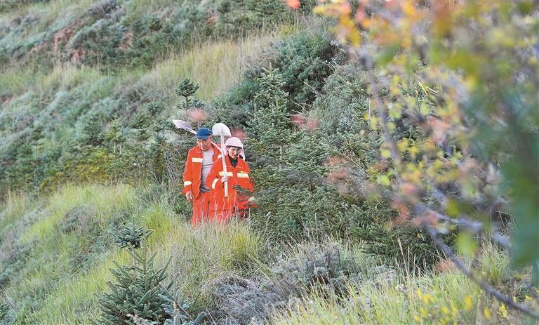 夫妻管護(hù)員沿著小道巡護(hù)